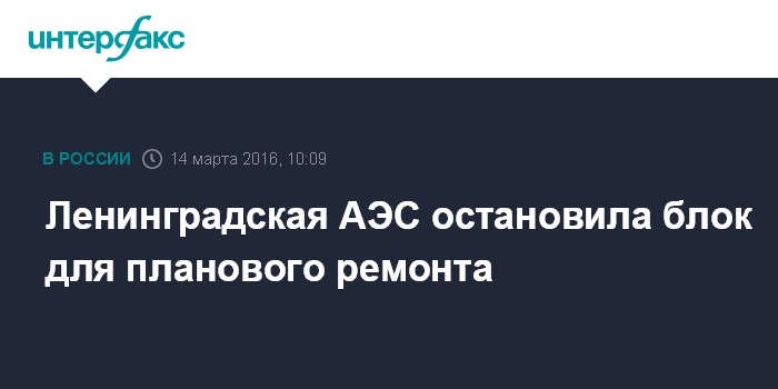 Москва. 14 марта. INTERFAX.RU - Ленинградская АЭС в воскресенье остановила энергоблок №4 для планового ремонта, сообщили "Интерфаксу" в пресс-службе станции.