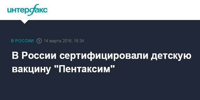 Москва. 14 марта. INTERFAX.RU - Минздрав РФ сертифицировал детскую вакцину "Пентаксим" компании Sanofi, предназначенную для профилактики пяти наиболее опасных детских заболеваний, в том числе дифтерии, столбняка и полиомиелита.