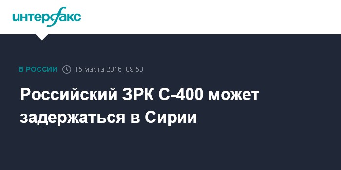 Москва. 15 марта. INTERFAX.RU - Россия может оставить зенитно-ракетный комплекс С-400 в Сирии на некоторое время, считает глава комитета Совета Федерации по обороне и безопасности Виктор Озеров.