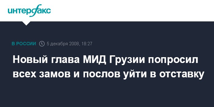 Москва. 5 декабря. INTERFAX.RU - Предложенный премьер-министром Грузии на пост главы МИД Григол Вашадзе попросил всех заместителей министра иностранных дел и послов написать заявление об уходе.