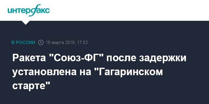 Ракета "Союз-ФГ" после задержки установлена на "Гагаринском старте"