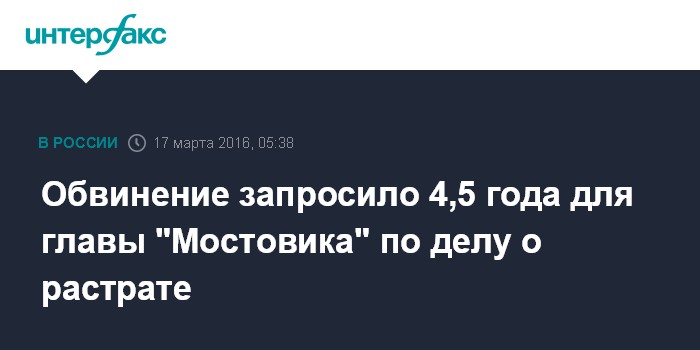 Обвинение запросило 4,5 года для главы "Мостовика" по делу о растрате
