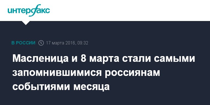 Масленица и 8 марта стали самыми запомнившимися россиянам событиями месяца