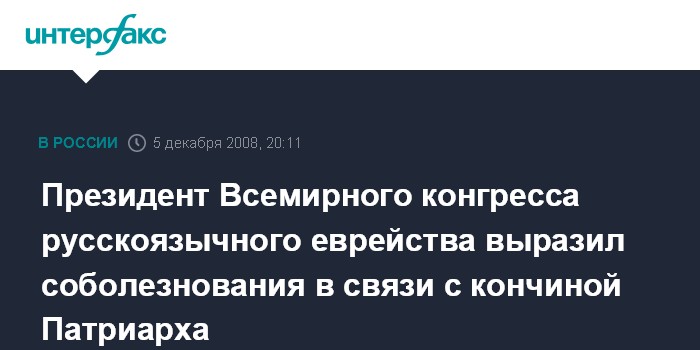 Президент Всемирного конгресса русскоязычного еврейства выразил соболезнования в связи с кончиной Патриарха