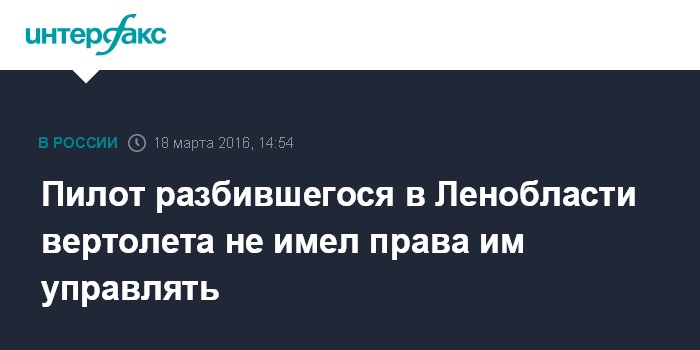Пилот разбившегося в Ленобласти вертолета не имел права им управлять