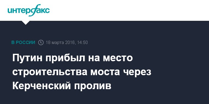 Во вторую годовщину подписания договора о принятии Крыма в состав РФ российский лидер ознакомится с ходом строительства объекта, имеющего стратегически важное значение для жизнеобеспечения нового субъекта России, - транспортного перехода через Керченский пролив.