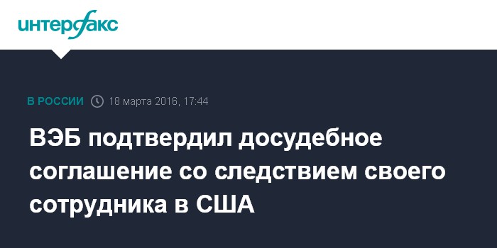 ВЭБ подтвердил досудебное соглашение со следствием своего сотрудника в США