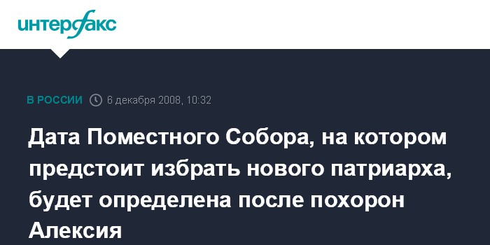 Дата Поместного Собора, на котором предстоит избрать нового патриарха, будет определена после похорон Алексия