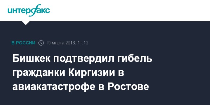 Бишкек подтвердил гибель гражданки Киргизии в авиакатастрофе в Ростове