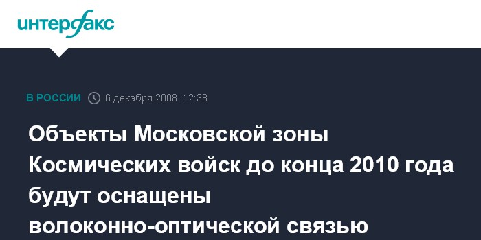 "Мы уже до конца 2010 г. планируем завершить строительство волоконно-оптических линий передачи в интересах ряда объектов Космических войск Московской зоны", - сказал он, выступая на учебно-методических сборах руководящего состава связи Космических войск, сообщает.