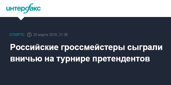 Москва. 20 марта. INTERFAX.RU - Шахматисты из России Сергей Карякин и Петр Свидлер сыграли вничью в стартовом туре второго круга турнира претендентов, который проходит в здании Центрального телеграфа в Москве.