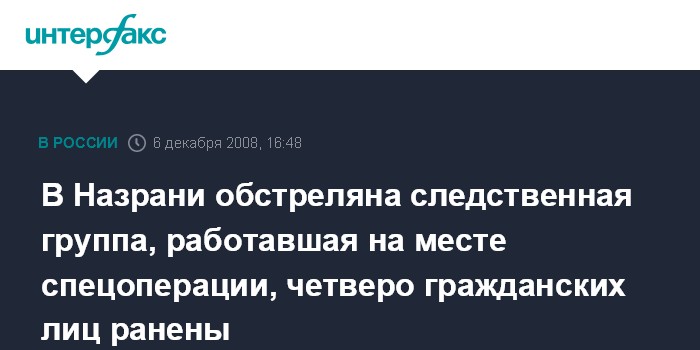 Москва. 6 декабря. INTERFAX.RU - В Назрани после проведения спецоперации, в результате которой были уничтожены два боевика, неустановленные лица с расположенной вблизи возвышенности открыли огонь из автоматического оружия по сотрудникам следственной группы, работавшей на месте происшествия