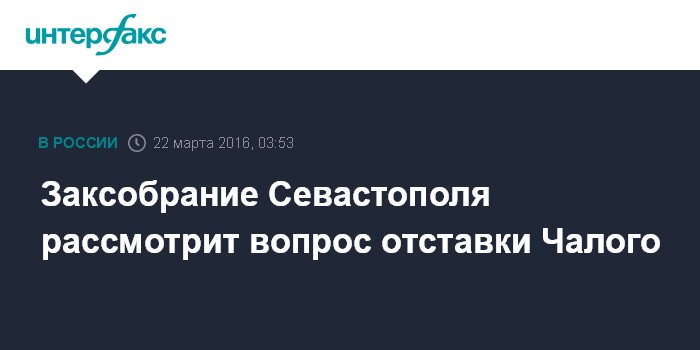 Москва. 22 марта. INTERFAX.RU - Законодательное собрание Севастополя включило в повестку дня пленарного заседания сессии, которая состоится 22 марта, вопрос об отставке председателя Заксобрания Алексея Чалого.