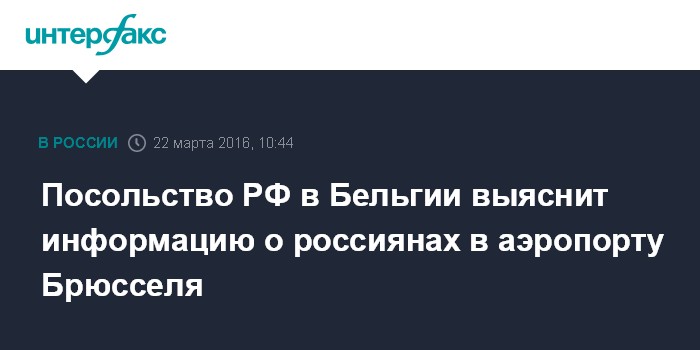 Москва. 22 марта. INTERFAX.RU - В посольстве РФ в Бельгии пока не располагают сведениями о том, пострадали ли граждане РФ в результате двойного взрыва в аэропорту Брюсселя.