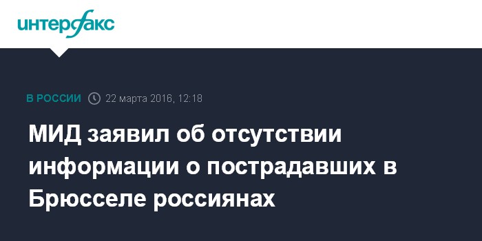 Москва. 22 марта. INTERFAX.RU - На данный момент информации о пострадавших в результате терактов в Брюсселе россиянах нет, заявила официальный представитель МИД РФ Мария Захарова.