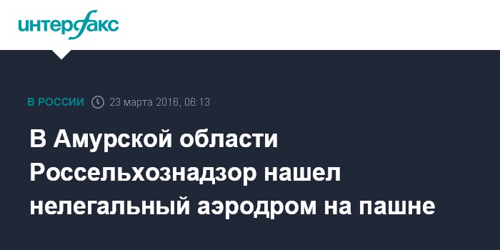 Москва. 23 марта. INTERFAX.RU - Незаконную взлетно-посадочную полосу на участке, который был определен как зона сельхозугодий, обнаружили специалисты земельного надзора в Ивановском районе Амурской области, сообщает управление Россельхознадзора по Забайкальскому краю и Амурской области.