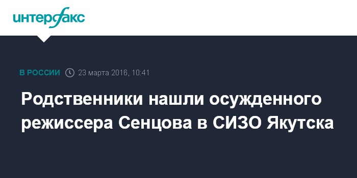 Родственники нашли осужденного режиссера Сенцова в СИЗО Якутска