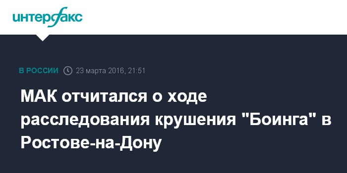 Москва. 23 марта. INTERFAX.RU - Межгосударственный авиационный комитет (МАК) отчитался о ходе работы комиссии по расследованию крушения в ростовском аэропорту "Боинга" 737-800 авиакомпании flydubai.