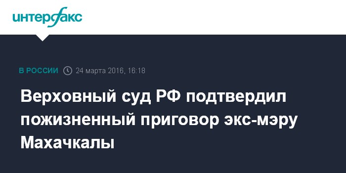 Верховный суд РФ подтвердил пожизненный приговор экс-мэру Махачкалы