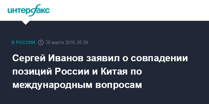 Сергей Иванов заявил о совпадении позиций России и Китая по международным вопросам