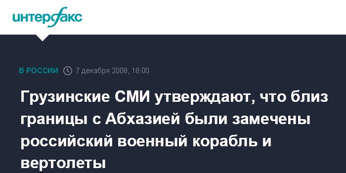 Грузинские СМИ утверждают, что близ границы с Абхазией были замечены российский военный корабль и вертолеты