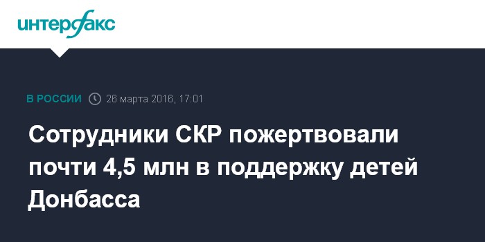 Сотрудники СКР пожертвовали почти 4,5 млн в поддержку детей Донбасса