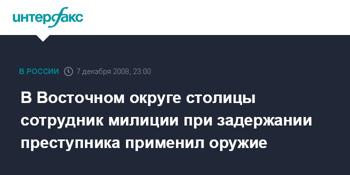 В Восточном округе столицы сотрудник милиции при задержании преступника применил оружие