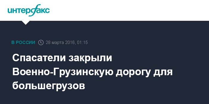 Москва. 28 марта. INTERFAX.RU - Военно-Грузинская дорога, связывающая Россию со странами Закавказья, закрыта для проезда большегрузного транспорта, сообщает пресс-служба ГУ МЧС по Северной Осетии в воскресенье.