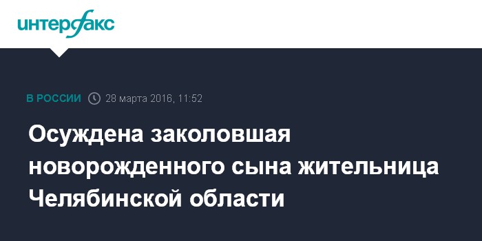 Москва. 28 марта. INTERFAX.RU - Суд в Челябинской области вынес приговор 25-летней жительнице города Аша, признав ее виновной в убийстве своего новорожденного ребенка, сообщает пресс-служба СУ СКР по региону в понедельник.