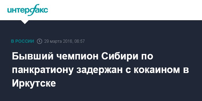 Москва. 29 марта. INTERFAX.RU - Полиция задержала в Иркутске бывшего профессионального спортсмена по подозрению в хранении кокаина, сообщила во вторник пресс-служба ГУ МВД по области.