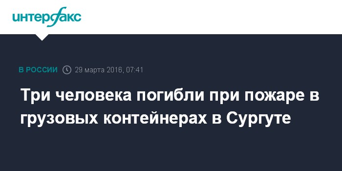 Москва. 29 марта. INTERFAX.RU - В Сургуте (Ханты-Мансийский автономный округ) в ночь на вторник произошло возгорание грузовых контейнеров, приспособленных под жилье, погибли три человека.