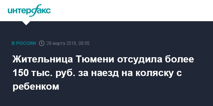 Жительница Тюмени отсудила более 150 тыс. руб. за наезд на коляску с ребенком
