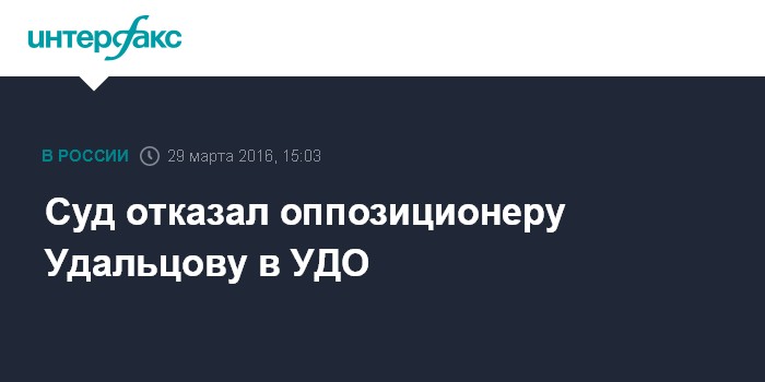 Москва. 29 марта. INTERFAX.RU - Рассказовский районный суд Тамбовской области отказал оппозиционеру Сергею Удальцову в условно-досрочном освобождении (УДО), сообщила его адвокат Виолетта Волкова.