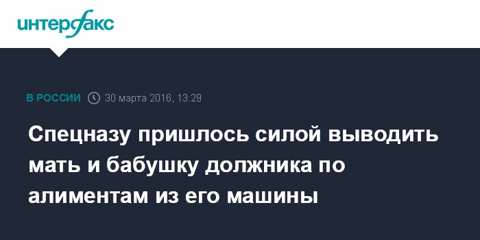 Москва. 30 марта. INTERFAX.RU - Судебные приставы при поддержке спецназа эвакуировали автомобиль злостного алиментщика в Ярославле, после того, как им удалось вывести из машины его мать и бабушку, сообщает пресс-служба УФССП по Ярославской области.