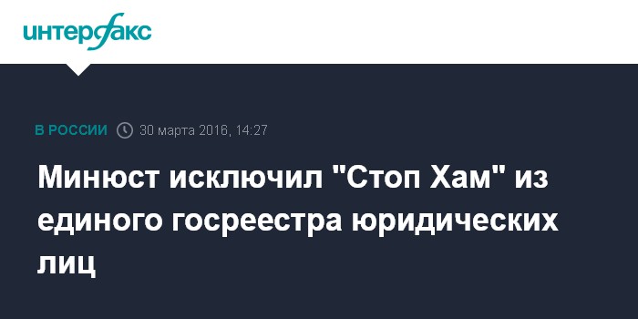 Минюст исключил "Стоп Хам" из единого госреестра юридических лиц