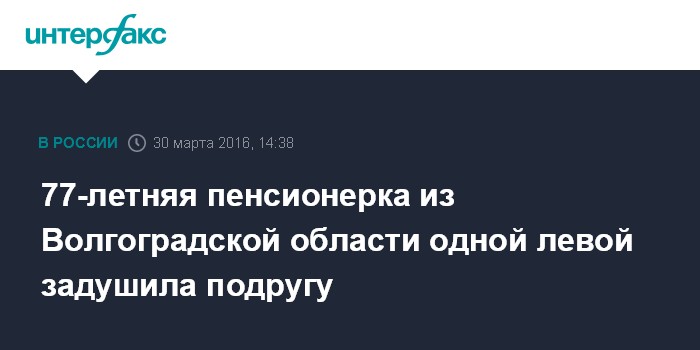 77-летняя пенсионерка из Волгоградской области одной левой задушила подругу