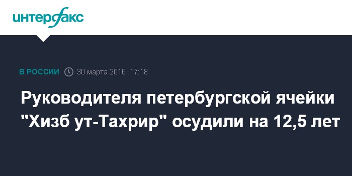Москва. 30 марта. INTERFAX.RU - Московский окружной военный суд на выездном заседании вынес приговор по уголовному делу местного жителя Петербурга, который руководил местной ячейкой запрещенной в РФ террористической организации "Хизб ут-Тахрир", передал корреспондент "Интерфакса" в среду.