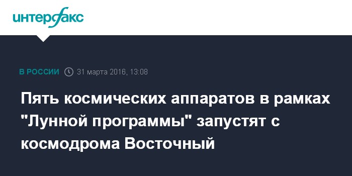 Москва. 31 марта. INTERFAX.RU - Первые пять космических аппаратов к Луне отправятся с космодрома Восточный, сообщил "Интерфаксу" источник в ракетно-космической отрасли.