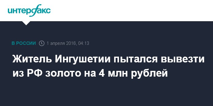 Житель Ингушетии пытался вывезти из РФ золото на 4 млн рублей