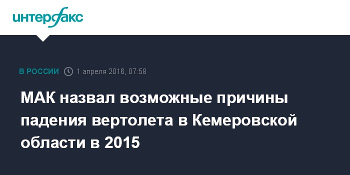 МАК назвал возможные причины падения вертолета в Кемеровской области в 2015