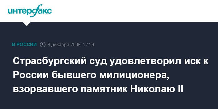 Страсбургский суд удовлетворил иск к России бывшего милиционера, взорвавшего памятник Николаю II