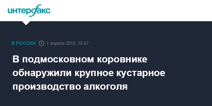 Москва. 1 апреля. INTERFAX.RU - Сотрудники Росалкоголя и управления "К" ФСБ обнаружили в Орехово-Зуевском районе Подмосковья крупнейшее за последнее время кустарное производство алкоголя.
