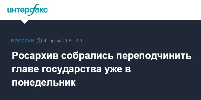"Речь идет о том, что с учетом важности этого ведомства прорабатывался вопрос о переподчинении Росархива непосредственно президенту, и, соответственно, о поднятии уровня этой службы", - сказал Песков журналистам.