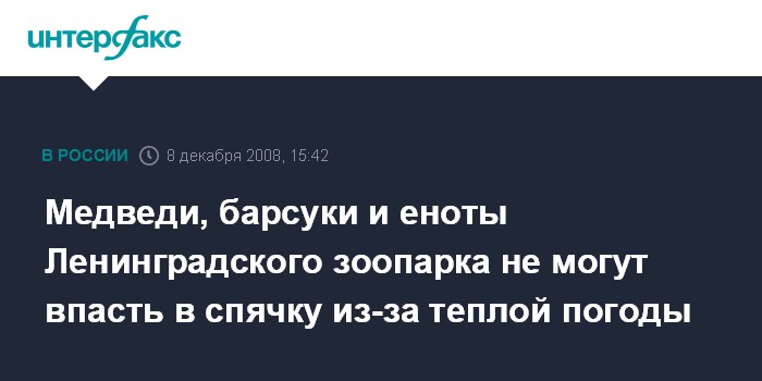 Медведи, барсуки и еноты Ленинградского зоопарка не могут впасть в спячку из-за теплой погоды