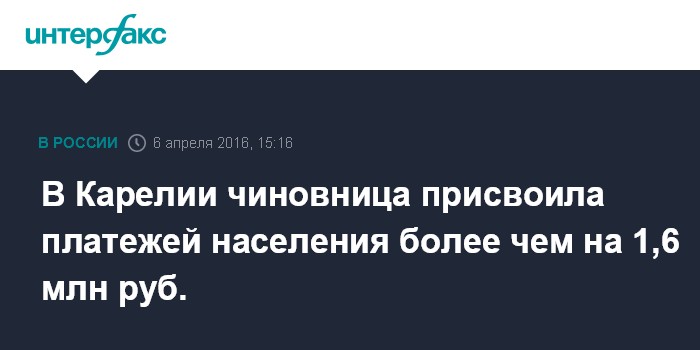 В Карелии чиновница присвоила платежей населения более чем на 1,6 млн руб.