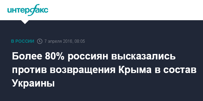 Более 80% россиян высказались против возвращения Крыма в состав Украины