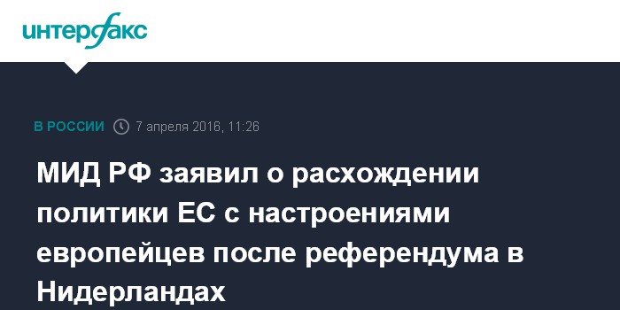 МИД РФ заявил о расхождении политики ЕС с настроениями европейцев после референдума в Нидерландах