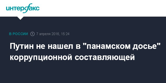 Москва. 7 апреля. INTERFAX.RU - Президент РФ Владимир Путин заявил, что не видит коррупционной составляющей в "панамском досье".