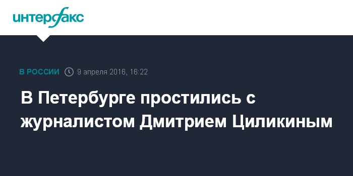 Москва. 9 апреля. INTERFAX.RU - Панихида и похороны журналиста Дмитрия Циликина прошли в субботу на Серафимовском кладбище в Петербурге.