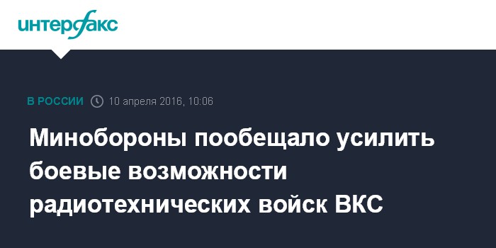 Москва. 10 апреля. INTERFAX.RU - В течение ближайших четырех лет будет завершено переоснащение радиотехнических войск Воздушно-космических сил (ВКС) России, сообщили в воскресенье "Интерфаксу" в пресс-службе Минобороны РФ.
